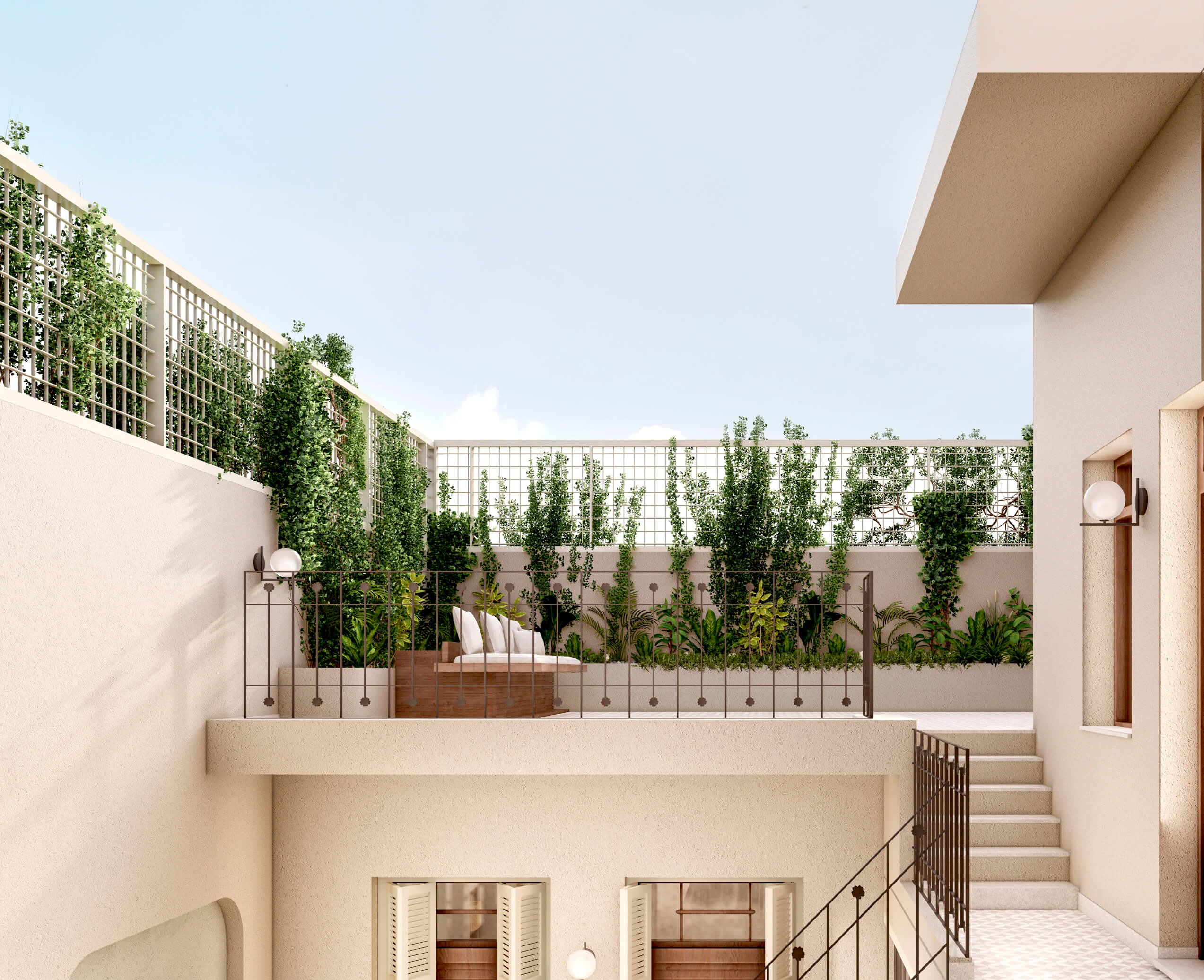 Planta Alta (Espacios de Intimidad): Destinada a terapias personalizadas, cuenta con un consultorio de clima contenido y tranquilo. Además, la planta se expande hacia una terraza de descanso ideal para actividades al aire libre y un balcón que mantiene la conexión visual con el patio central.