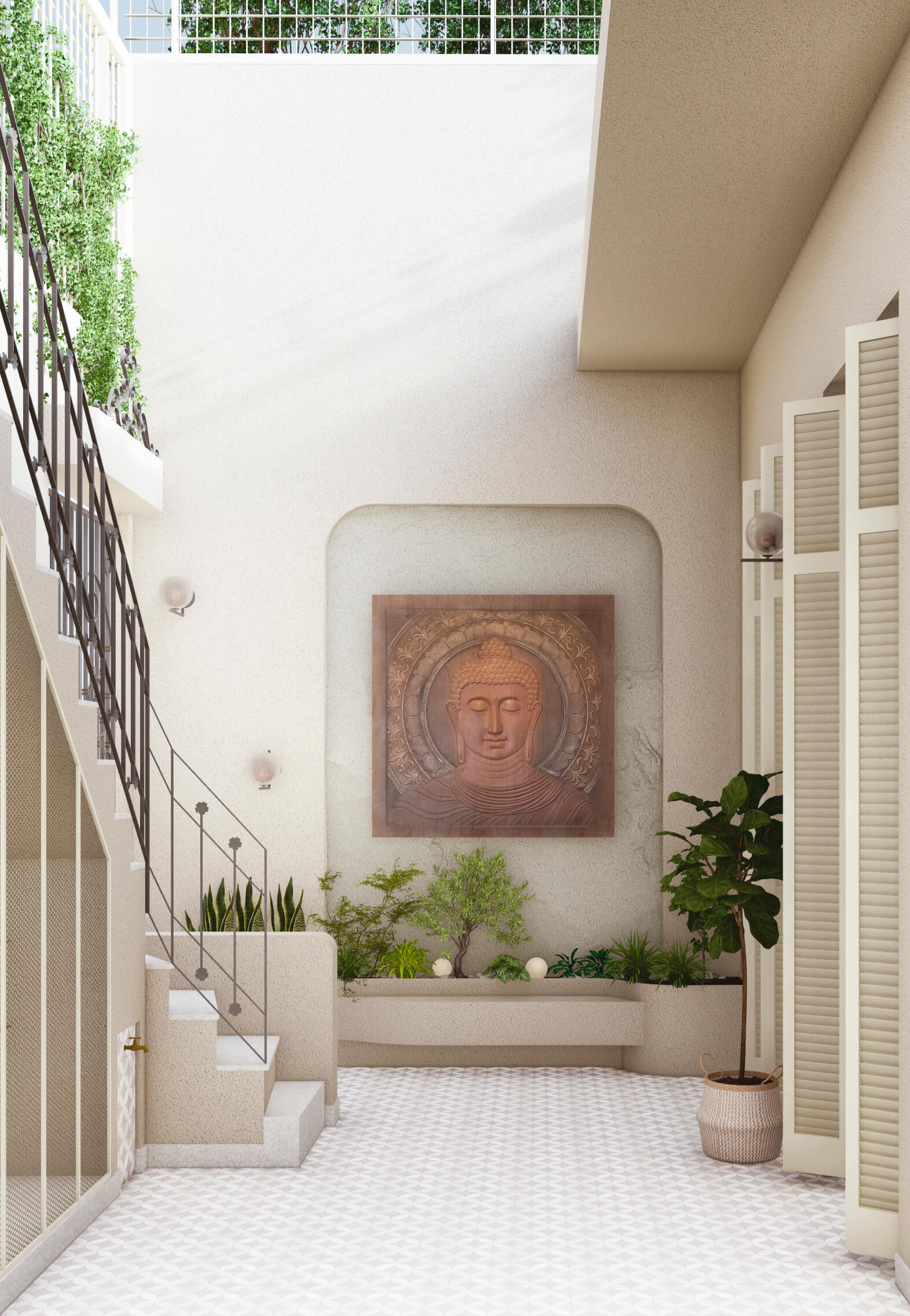 La organización de la obra gira en torno a un patio central que actúa como pulmón y eje articulador. Este espacio no solo garantiza luz natural y ventilación cruzada, sino que ofrece una relación constante con el exterior, funcionando como una transición necesaria hacia la calma.