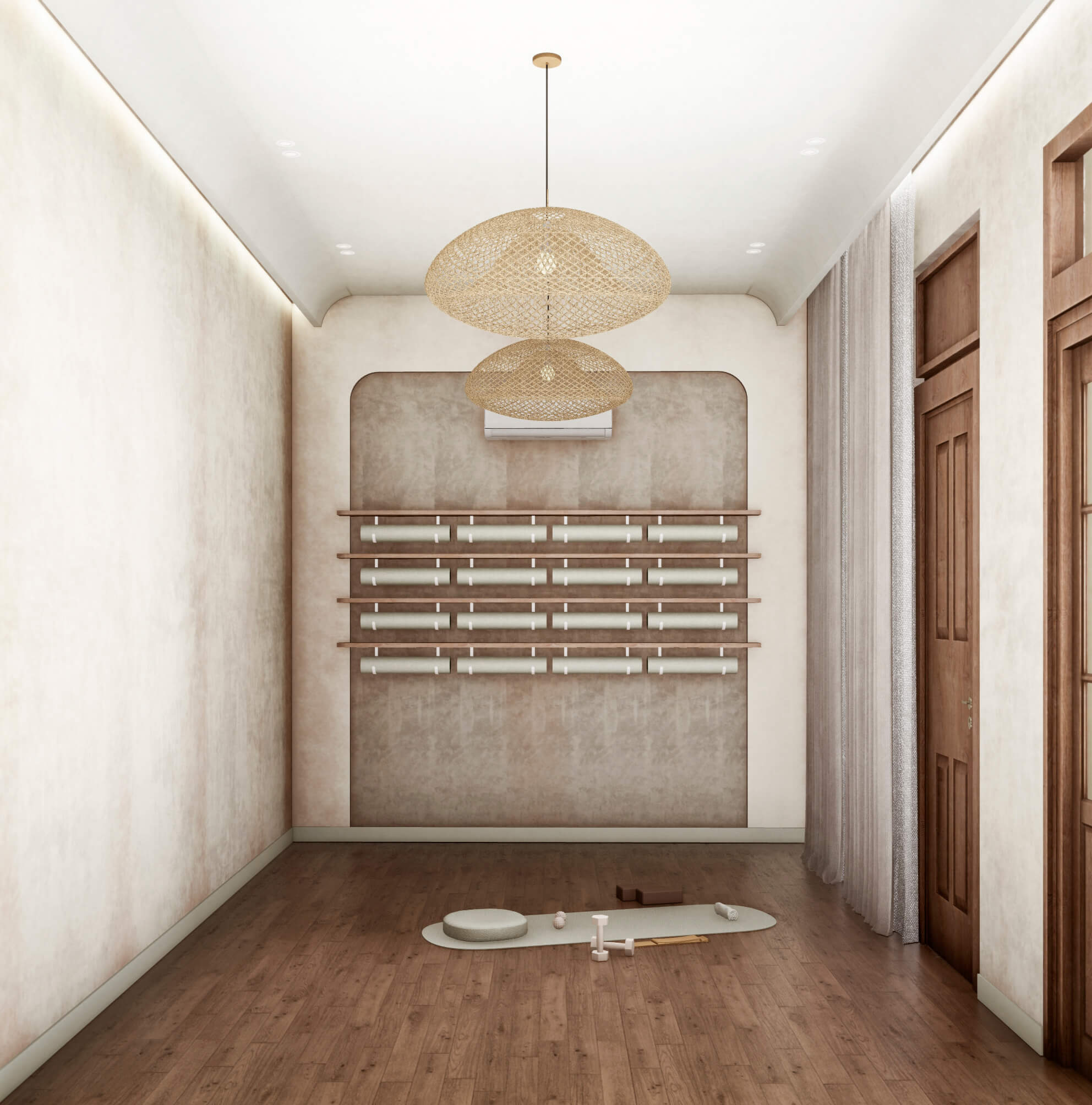 amplio, flexible y despejado, diseñado específicamente para clases grupales. La continuidad espacial y la atmósfera diáfana invitan al movimiento y a la introspección. Completan este nivel una cocina y un baño diseñados bajo criterios de funcionalidad y armonía estética.